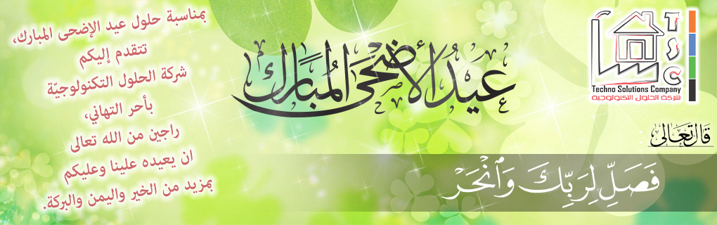 بمناسبة حلول عيد الإضحى المبارك، تتقدم إليكم شركة الحلول التكنولوجيّة بأحر التهاني، راجين من الله تعالى ان يعيده علينا وعليكم بمزيد من الخير واليمن والبركة.